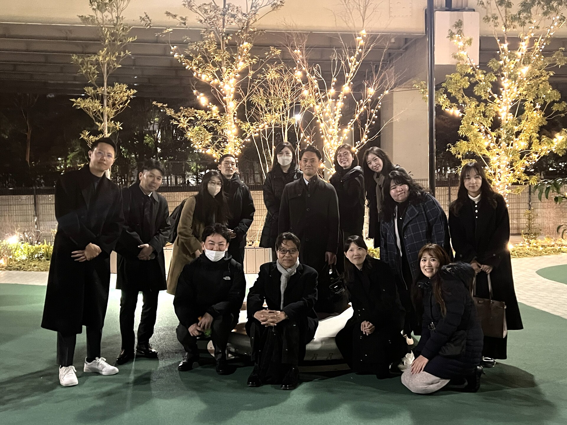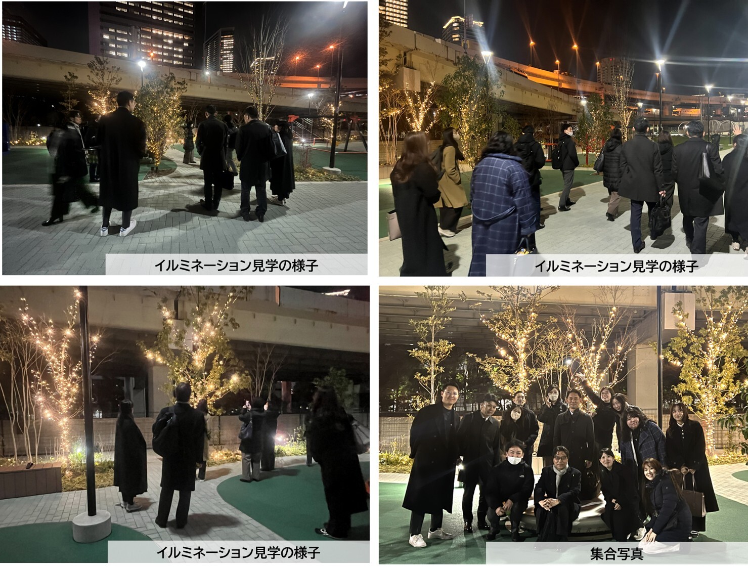 全体会終了後には、会場近くの港区立新浜公園へ移動。当協議会と一般社団法人芝浦エリアマネジメントが企画・実施したイルミネーションを全員で見学しました。水辺のまち・芝浦にふさわしい幻想的な光の演出に、自分たちの手でまちを彩る喜びを実感する素敵な締めくくりとなりました。