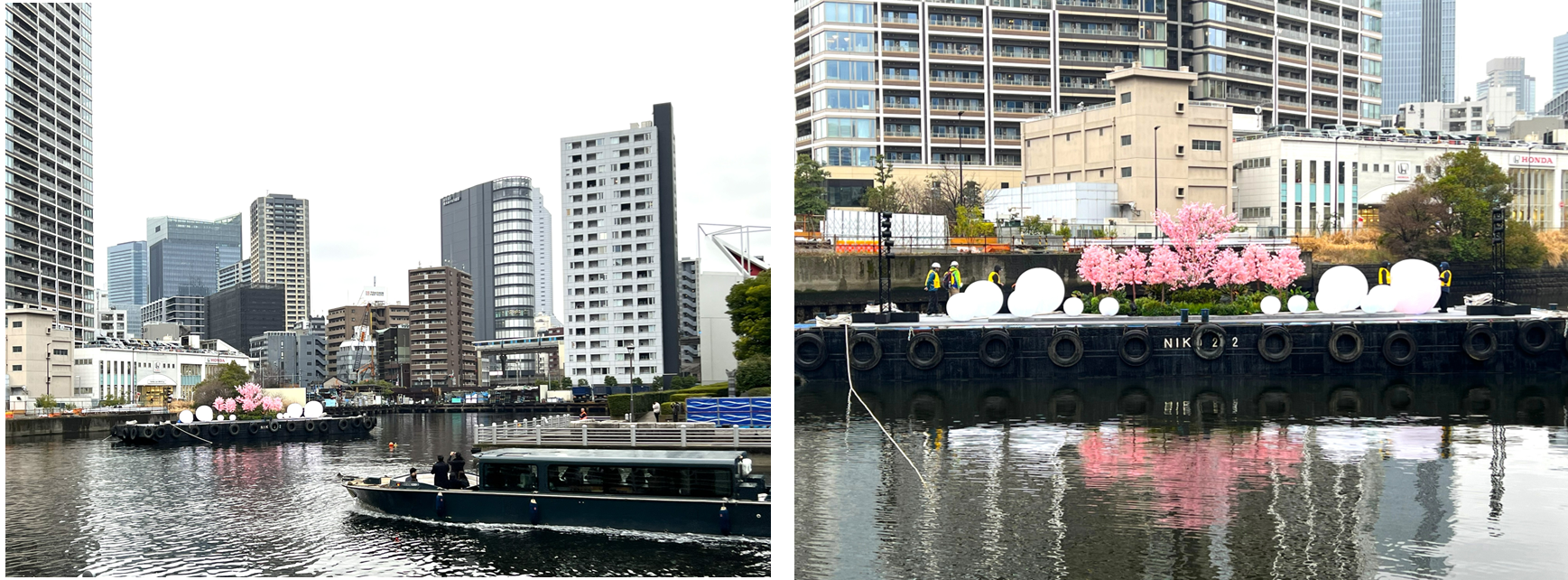 3/20(金・祝)に、芝浦の大切な地域資源である「水辺」を活かしたにぎわいづくりとして、芝浦運河・重箱堀を活用した水上インスタレーションを実施いたしました。